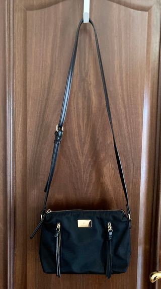 Bandolera de nylon en color negro con detalles dorados. Asa larga y ajustable. Consta de dos bolsillos delanteros y uno trasero con cierre de cremallera. Interior amplio con diferentes bolsillos (uno con cremallera), con cierre de cremallera. Marca: Paco Martínez. Como nuevo, apenas se ha utilizado, nada roto ni rozado. Alguna pregunta, no dudes en contactar. Más artículos de ropa-complementos y otros artículos variados en mi perfil.