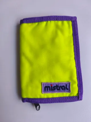 Cartera/billetera de la marca Mistral con un diseño llamativo. - Ribete exterior en color morado. - Cierre de cremallera con tirador. - Parche con el logo de la marca.