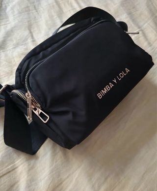Bolso de la marca BIMBA Y LOLA en color negro. - Diseño moderno y funcional. - Cremalleras doradas. - Correa ajustable.