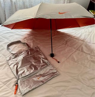 Paraguas plegable de la marca Nike, con un diseño bicolor. - Incluye una bolsa a juego para guardarlo o para usar cómo un bolso