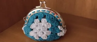Monedero boquilla crochet teal y blanco