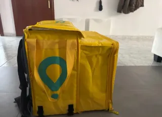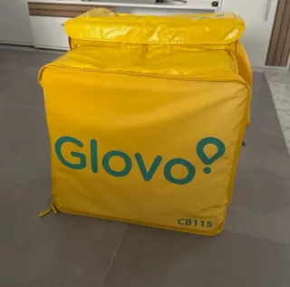 Bolso térmico de la marca Glovo, ideal para repartos. - Color amarillo brillante. - Cierre de cremallera. - Asa para transporte.