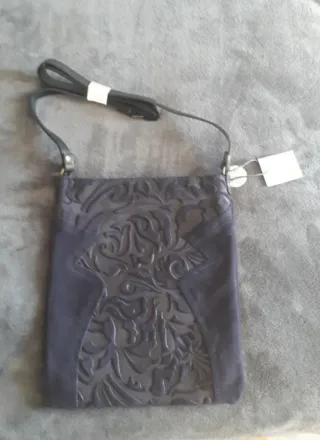 Apenas utilizado. Bolso bandolera de la marca Paco Martinez, con un diseño patchwork de piel y ante. - Combinación de texturas. - Costuras decorativas en contraste.