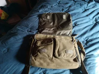 Bolso estilo vintage en color café. Ha tenido poco uso. No es de marca, pero no hay esa opción. NO HAGO ENVÍOS - Material tipo piel. - Múltiples bolsillos exteriores con cremallera. - Asas de hombro y correa ajustable para bandolera. - 38largo x 30alto x 14fondo