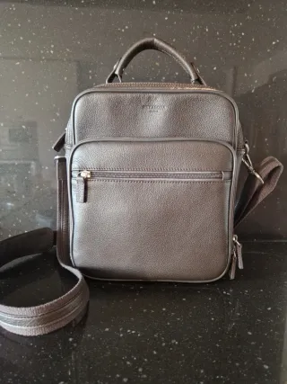 Elegante bolso de piel para caballero. Tiene 5 meses, está un poquito rozado, me costó 99€ - Material: Piel. - Color: Marrón. - Marca: Hexagona.