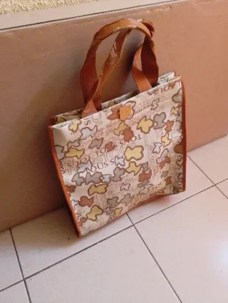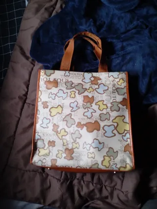 Bolso de la marca Tous con un diseño estampado. - Estampado de ositos. - Ribetes en color marrón.