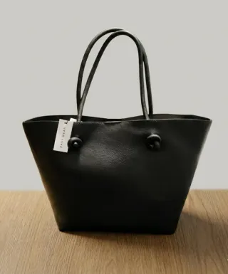 Precioso bolso tipo shopper color negro de la marca Easy Wear. Es un modelo muy elegante y minimalista, destacando los detalles de nudos decorativos en la base de las asas. Estado Nuevo con etiqueta. Color negro mate con textura tipo piel. Capacidad amplia, perfecto para el día a día, oficina o universidad. Asas de hombros cómodas y cierre principal. Estilo minimalista, similar a diseños de alta gama pero muy funcional..
