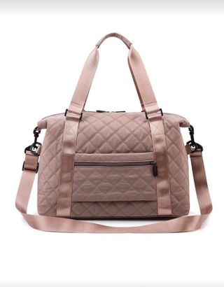 Bolso de tela acolchado con diseño de rombos, ideal para deporte o viajes. - Asa de mano y correa ajustable para hombro. - Compartimento principal espacioso. - Logo de la marca NINGJIA en la parte frontal.