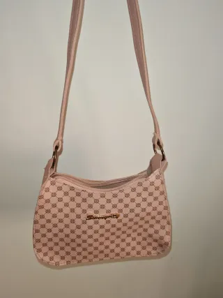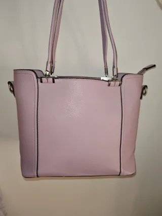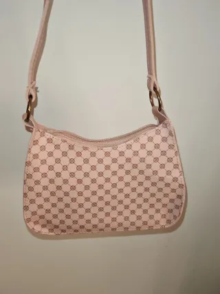 Elegante bolso de mano con un bonito acabado en color rosa pastel. Su diseño lo hace perfecto para complementar cualquier atuendo. - Asa superior. - Cierre de solapa. - Detalle metálico con el logo de la marca. - Pequeño desgaste en la parte lateral, se ve en la última foto.
