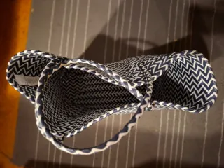 Elegante bolsa de playa con un diseño llamativo. - Asa trenzada para mayor comodidad. - Patrón geométrico en zigzag.