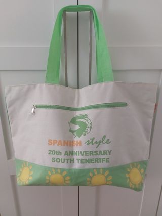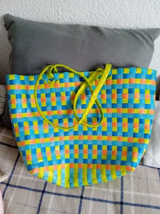 Bolso tote grande, ideal para llevar todo lo que necesitas. - Diseño moderno y vibrante. - Asa de mano resistente. - Confeccionado en material ligero y duradero. Para deporte... Playa... Usado una vez. REBAJADO