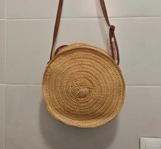 Precioso bolso de mimbre, ideal para tus días de verano. Es nuevo. - Asa de cuero marrón. - Forro interior marrón oscuro. - Cierre con cordón. NO ES UNA CESTA DE PLAYA!! Ahí se ve en la foto. REBAJADO