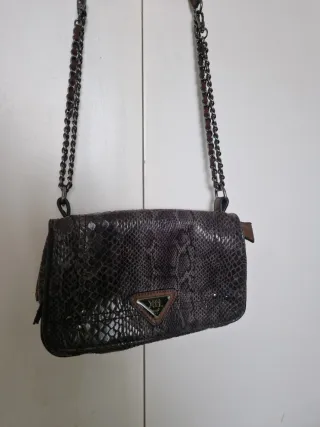 Elegante bolso con estampado de serpiente y detalles dorados. Perfecto para complementar cualquier atuendo. - Diseño moderno con estampado de serpiente. - Cadena dorada para llevar al hombro o cruzado ( un poco desgastada) - Cierre de solapa con detalle metálico ( un poco desgastado)