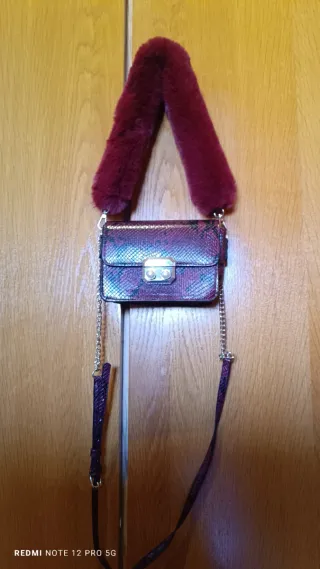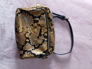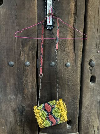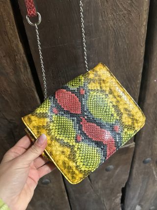 Bolso pequeño con un llamativo estampado. - Diseño inspirado en piel de serpiente. - Cadena metálica para llevar al hombro o cruzado. - Sin usar