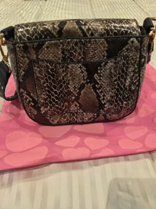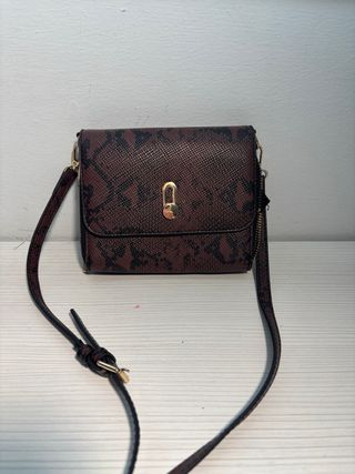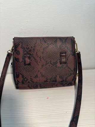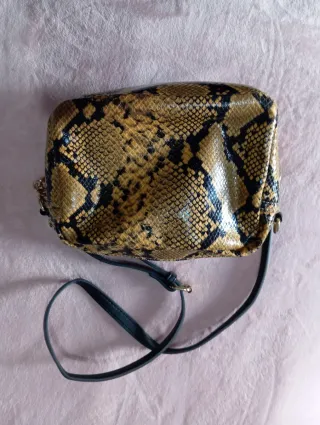 Bolso con un llamativo estampado de piel de serpiente. Es un accesorio versátil que complementará tu estilo. - Diseño con estampado de serpiente. - Asa corta y correa larga ajustable. - Cierre de solapa con broche. - En tercer foto que está un poco sucio - Ideal para cosas pequeñas - No hago envíos