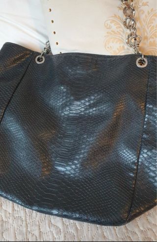 Bolso Negro Piel Imitación Serpiente