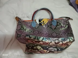 Bolso de edición limitada de la marca Longchamp. Un accesorio elegante y distintivo. - Fabricado en Francia. Bolso en perfecto estado. Efecto piel serpiente. Medidas: Ancho 8,5 Alto 18 Largo 28 Bolsillo trasero con cremallera. Cualquier móvil grande entra perfectamente. Varios departamentos interiores y forrado con tejido de seda tipo print. Puede usarse al hombro o cruzado.