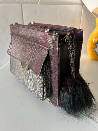 Bolso morado y negro efecto piel serpiente