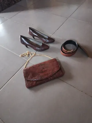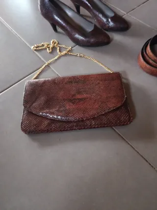 Bolso, zapatos y cinturón piel serpiente