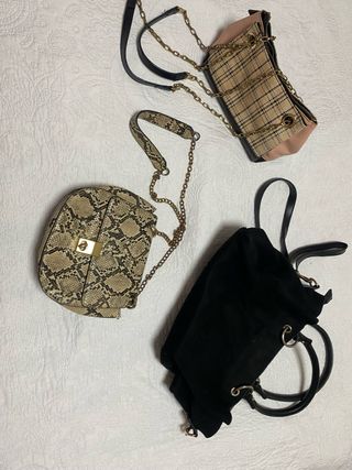 Lote 3 bolsos: serpiente, cuadros y negro