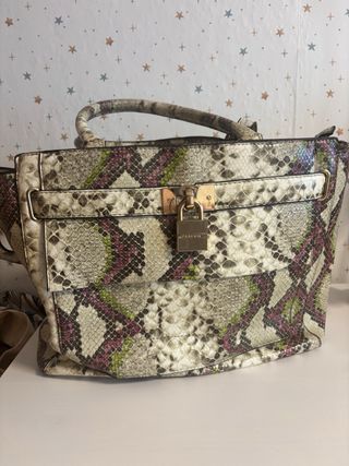 Bolso con estampado de serpiente de Lefties. - Diseño con efecto piel. - Cierre de cremallera. Tiene una argolla un poco fea como se ve en la foto,de hay su precio