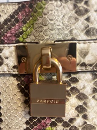 - Bolso de piel de serpiente. - Detalles metálicos dorados.