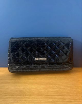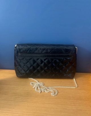 Elegante bolso de noche con un diseño acolchado y acabado brillante. - Textura tipo piel de serpiente. - Detalle de logo metálico. - Cierre de solapa.