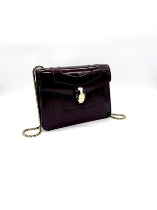 Este bolso Bvlgari Serpenti es un icono de lujo de segunda mano que refleja la sofisticación de la firma italiana. Confeccionado en charol color Burgundy, este bolso Bvlgari Serpenti destaca por su brillo y silueta estructurada. El emblemático cierre con cabeza de serpiente esmaltada y el hardware dorado realzan su carácter joya. Incorpora cadena dorada para llevar al hombro o cruzado. Mide 20 x 14 x 5 cm. El estado es excelente, con brillo intacto y mínimos signos de uso. Madrid 8463