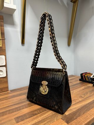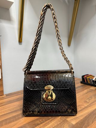 Elegante bolso vintage con acabado en piel de serpiente. - Material: Piel de serpiente. - Cierre metálico dorado. - Asas de mano. el asa tiene un poco abierto
