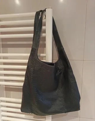 Bolso de piel con un diseño elegante y moderno. - Acabado texturizado con efecto piel de serpiente. - Cierre con solapa y hebilla metálica. - Correa ajustable para llevar al hombro o cruzado.