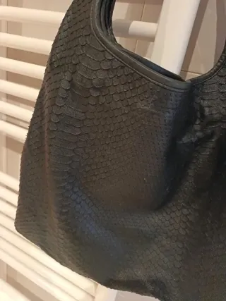 Bolso de piel con un diseño elegante y moderno. - Material: Piel de serpiente. - Color: Negro.