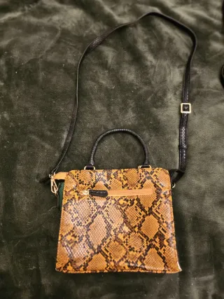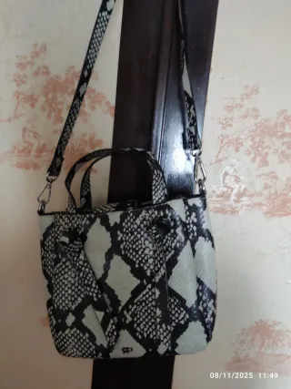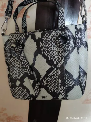 Bolso con un llamativo estampado de piel de serpiente. - Diseño moderno y elegante. - Asa corta y correa larga ajustable.