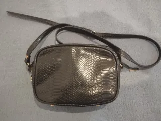 Bolso bandolera con un diseño moderno y elegante. - Acabado con textura de piel de serpiente. - Correa ajustable para mayor comodidad. - Cierre seguro para tus pertenencias. No es de tienda conocida