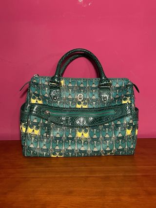 Bolso Kilah Piel Serpiente Verde Estampado Vintage