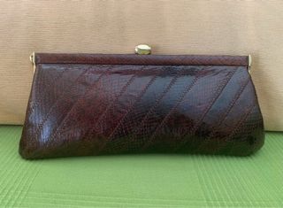 Elegante bolso clutch elaborado con piel de serpiente natural vintage. - Material: Piel de serpiente natural y el interior piel Napa. - Color: Marrón. - Diseño: Clutch con correa extraíble , tres formas de llevarlo, como en la foto, sin asa o de mano , (leer la última foto) . - Acabado: Textura de piel de serpiente con metal en los bordes. No envió, entrega y cobro en mano.