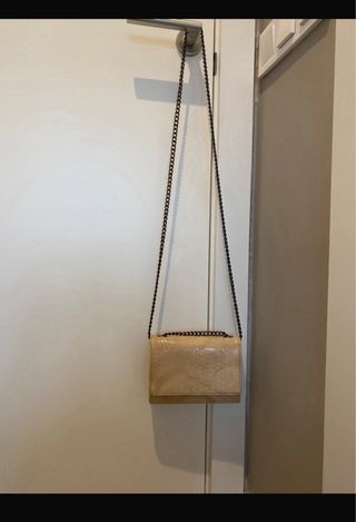 Bolso con estampado de serpiente y cadena dorada. Tienda Sfera, puesto en dos ocasiones. - Diseño elegante con cierre metálico. - Cadena dorada para llevar al hombro.