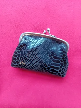 Elegante monedero con un llamativo diseño. - Material con textura de piel de serpiente. - Cierre de boquilla metálico.