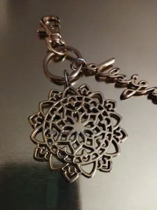Este charm es un accesorio decorativo para bolsos. - Diseño de mandala calada. - Colgante con nombre en letras doradas.
