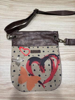 Bolso cruzado de la marca Desigual con un diseño llamativo. - Estampado de mariposa y corazón. - Detalles en piel sintética. - Cierre de cremallera.