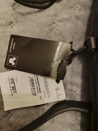 Mochila/bolso de la marca Desigual con diseño de Mickey. - Color negro con detalles plateados. - Adorno de Mickey Mouse en la parte frontal. - Cremallera para el compartimento principal. - Bolsillo frontal con cremallera.