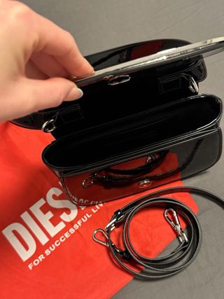 👜Bolso de mano Diesel 1DR con acabado brillante. - Material: charol. - Color: negro. - Diseño moderno y elegante. 💰 Precio en tienda 500€ 🚨🎁 Venta porque me lo regalo mi ex pareja y no es de mi gusto, esta sin estrenar, nuevo al 100%‼️