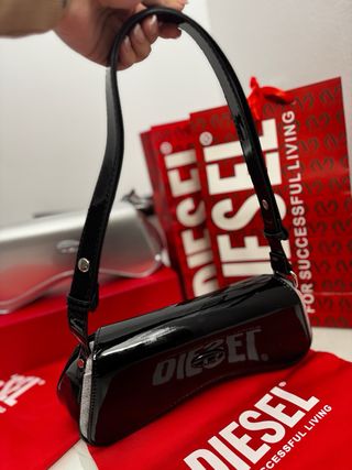 Bolso de mano Diesel con un acabado brillante y moderno. - Diseño elegante y llamativo. - Correa ajustable para mayor comodidad. - Logo distintivo de la marca en la parte frontal.