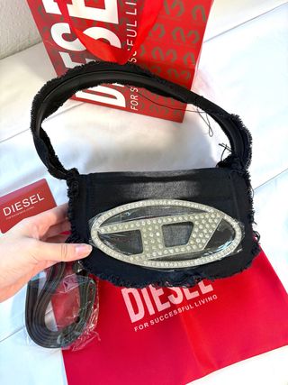 Bolso de la marca Diesel en color negro, completamente nuevo. - Diseño moderno y elegante. - Incluye correa ajustable. - Detalle frontal distintivo de la marca.