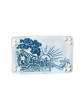 Parche original de Diesel procedente de cinturón de cuero. Bordado en hilo azul con diseño gráfico y logo Diesel. Pieza interesante para customizar chaquetas, bolsos, pantalones o proyectos de upcycling. Material tipo cuero / piel natural. Estado usado con marcas visibles en la parte trasera debido a su uso previo en cinturón (ver fotos). La parte frontal bordada se mantiene en buen estado. Ideal para proyectos DIY, custom streetwear o restauración de prendas. #diesel #patch #custom #upcycling