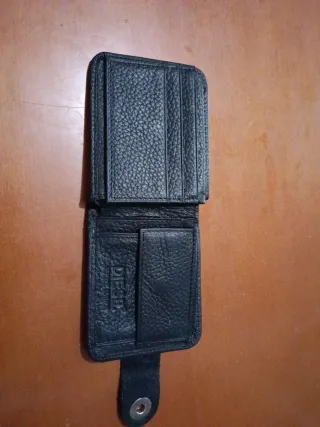 Cartera de piel con un diseño elegante y funcional. - Cierre de botón a presión. - Compartimentos interiores para tarjetas.