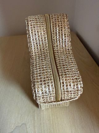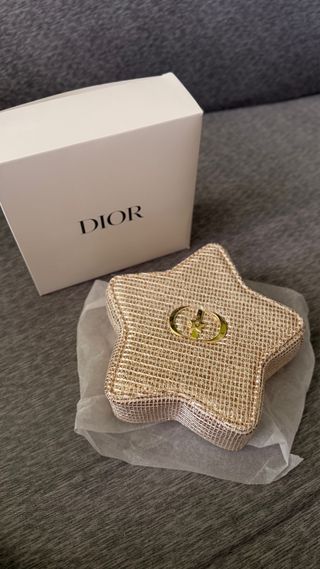 Neceser con forma de estrella de la marca Dior, en color dorado y sin estrenar. - Diseño brillante. - Logo de la marca en la parte frontal.