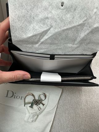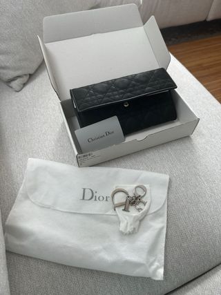 Elegante cartera Dior en color negro. - Diseño de monedero. - Incluye llavero con las iniciales 'CD'.
