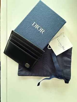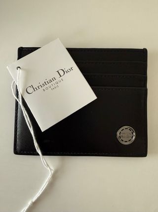 Elegante tarjetero de la marca Dior, edición especial. - Diseño minimalista y sofisticado. - Acabado en piel. - Compartimentos para tarjetas.