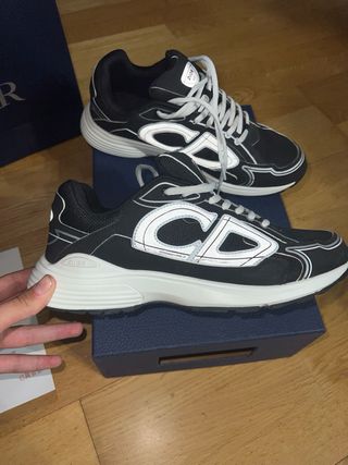 Zapatillas de la marca Dior, modelo B30. - Diseño moderno en negro y blanco. - Detalles reflectantes. - Suela de goma. - Incluye caja y bolsa de la marca.