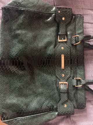 Bolso Escada piel con relieve de serpiente en color verde. Dispone de correa para colgar al hombro opcional. Las medidas son 30cm de largo, 11 cm de ancho y 21 cm de alto